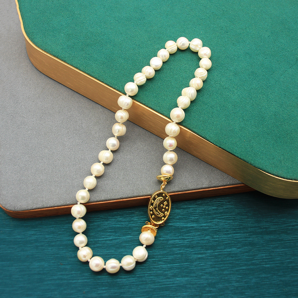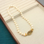 Retro relief moon gold coin necklace with natural pearls